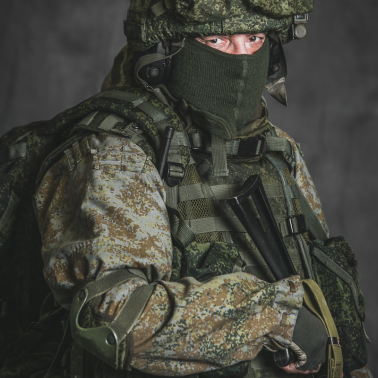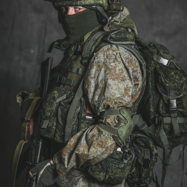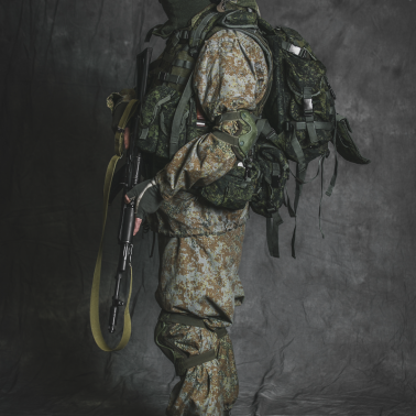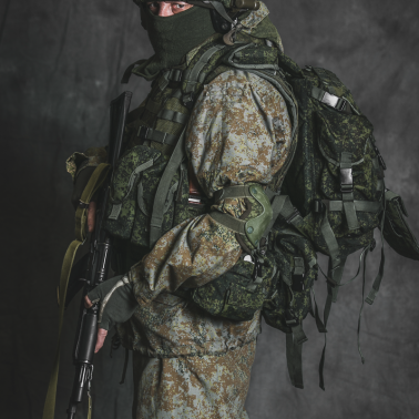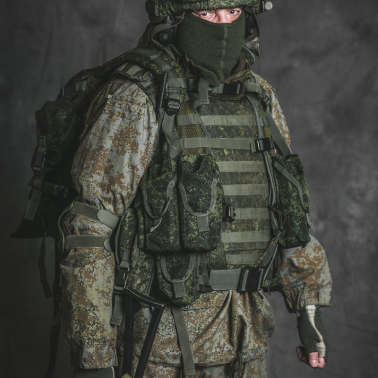Hełm to kompozytowy lekki z pokrowcem desantowym typ 6B47. Kominiarka nie palna . Gogle ochronne balistyczne 8B50 . Elektryczna latarka sygnalizacyjna FES typu 6E2. Kamizelka kuloodporna 6B45. Kamizelka modułowa 6Sz117 zestaw strzelca z plecakiem . Karabin AK 74 N ,bagnet 6H4 Komplet osłon na kolana i łokcie 6B51. Zestaw maskujący dwustronny 6Sz122 . Uniwersalne ukrycie (pałatka) 6Sz120 . Mała łopata piechoty ŁPM typu 6E5. Wielofunkcyjny nóż (typ 6E6). Mundur WKBO . Buty wojskowe Garsing 35 Rush. Wszystko wzorowane na podstawie opisu wyposażenia Armii Federacji Rosyjskiej .