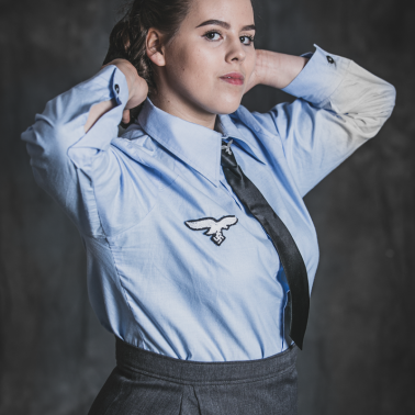 Furażerka w kolorze niebiesko-szarym z adlerem Luftwaffe, kostium składający się z marynarki oraz spódnicy w tym samym kolorze. Na marynarce znajdowały się: Adler Luftwaffe (na prawej piersi), na lewym rękawie naszywka specjalizacji (Fernsprechpersonal) oraz niżej oznaczenie stopnia (Helferin), koszula z Adlerem LW w kolorze jasnoniebieskim, czarny krawat z wpinką LW, buty damskie w kolorze czarnym oraz szaro-niebieskie pończochy nylonowe ( jednak zdjęcia potwierdzają używanie również innych kolorów).