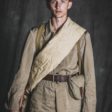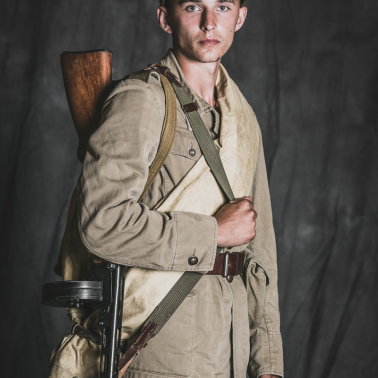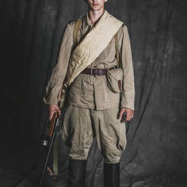Nakrycie głowy – rogatywka polowa sukienna wz. 1943 z orzełkiem wz. 1943 – kurica, hełm radziecki 3-nitowy z namalowaną kuricą, kurtka drelichowa wz. 43, spodnie szarawary radzieckie szeregowego, buty sapogi kierżowe szeregowego, pas skórzany jednobolcowy szeregowego, ładownica na magazynek bębnowy, manierka radziecka, plecak radziecki tzw. mieszok, radziecka pałatka zwinięta w rulon, pistolet maszynowy Ppsz41
