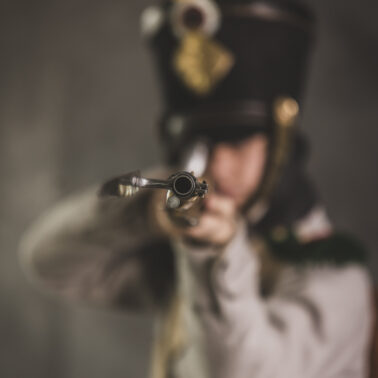 Po klęsce w Rosji Wielka Armia Napoleona musiała prędko otrząsnąć się z poniesionych strat. Większość pułków, które zostały praktycznie unicestwione podczas kampanii na stepach Imperium Rosyjskiego, zostało odtworzonych. Miejsce weteranów spod Rivoli czy Austerlitz zajęli conscripts- rekruci masowo zaciągani do wojska. 33.regiment w roku 1812 poniósł straty ok. 85% stanu osobowego. Podczas bitwy pod Dreznem, która miała miejsce w dniach 26–27 sierpnia 1813 roku, panowały trudne warunki pogodowe. Rankiem 27 sierpnia występowały deszcz i mgła, co sprzyjało Napoleonowi, ponieważ ukrywało to ruchy jego wojsk przed przeciwnikiem . Tego dnia doszło do ulewnych opadów deszczu, które zamoczyły proch strzelniczy, czyniąc broń palną mniej skuteczną. Napoleon wykorzystał tę sytuację, zlecając atak swojej kawalerii, która zadała znaczne straty wojskom austriackim . Niekorzystne warunki pogodowe utrudniły jednak skuteczne ściganie wycofujących się sił koalicji. Z powodu opadów deszczu żołnierz ma rozwinięte couvre nuque i założony płaszcz chroniący przed wilgocią i chłodem. Bitwa pod Dreznem miała okazać się ostatnim wielkim zwycięstwem Napoleona, Boga Wojny. Francuzi dysponując siłami (135 000) pokonali połączone siły Rosji, Austrii i Prus (214 000 żołnierzy) tracąc 10 000 żołnierzy i wykluczając z walki 40 000 przeciwników.