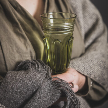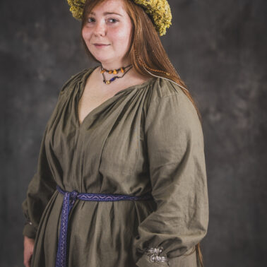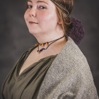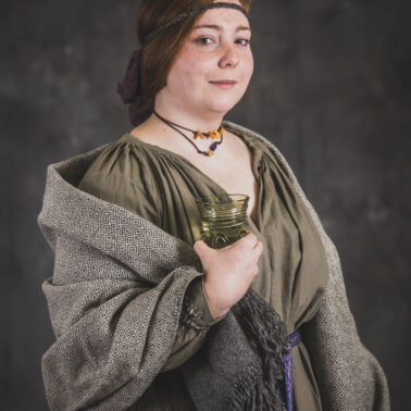 Kobieta pochodząca z tzw. kultury wielbarskiej, która funkcjonowała na ziemiach dzisiejszej Polski (ale nie tylko) w początkach naszej ery, w trakcie trwania cesarstwa rzymskiego. Kultura wielbarska, a co za tym idzie, ludzie, którzy do niej przynależeli byli bogaci – tzn. bogato wyposażali swych zmarłych na ostatnią drogę. Widoczne bransolety na rękach dziewczyny są charakterystyczne właśnie dla tej kultury. Co ciekawe można dostrzec na jej szyi paciorki wykonane ze szkła, a także szklany puchar w jej ręku. Są to elementy wystroju rzymskiego. Obecność ich w grobach, a także na dziewczynie świadczy o kontaktach z Rzymianami. Kobieta mogła sama handlować lub być żoną handlarza barbarzyńskiego, któremu udało się wykonać pierwszą, większą transakcję, który w zamian za dobra (prawdopodobnie bursztyn, choć mogły to być inne dobra jak np. tkaniny, a także wdzięki kobiety) otrzymał szklany rzymski puchar. Handel z Rzymianami wskazuje na co najmniej obojętne stosunki wobec obu stron, a przynajmniej brak jest dowodów na wrogie nastawienie tej ludności względem synów Romulusa i Remusa. Ot, barbarzynka z upodobaniem do Rzymian ;).