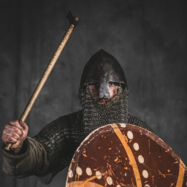 Bogaty najemny wojownik z Gotlandii w rynsztunku bojowym