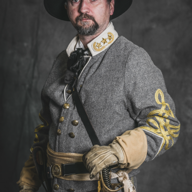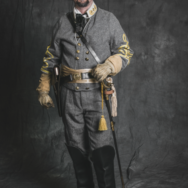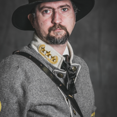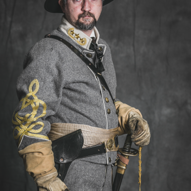 Sylwetka generała sztabowego kawalerii przy Armii Północnej Wirginii dowodzonej przez generała Roberta E. Lee stylizowana na jednego z dowódców brygad I Pułku Kawalerii JEB Stuarta.